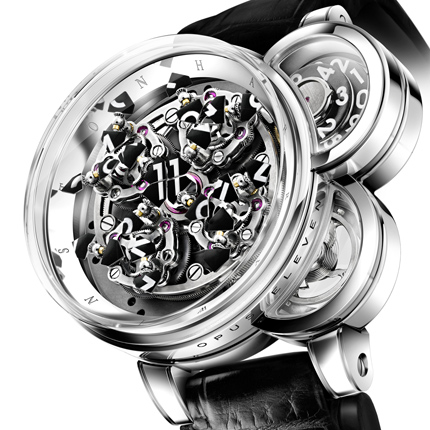 世界にデニスGiguet、前例のない技術的、構造的なスタイルからオーパスイレブンでは、嵐をオフに設定します。 洗練されたメカニズムは、時計のまれなキャラクターを与えるために - 資質は、キャンペーン形式の爆発時間を形成する。